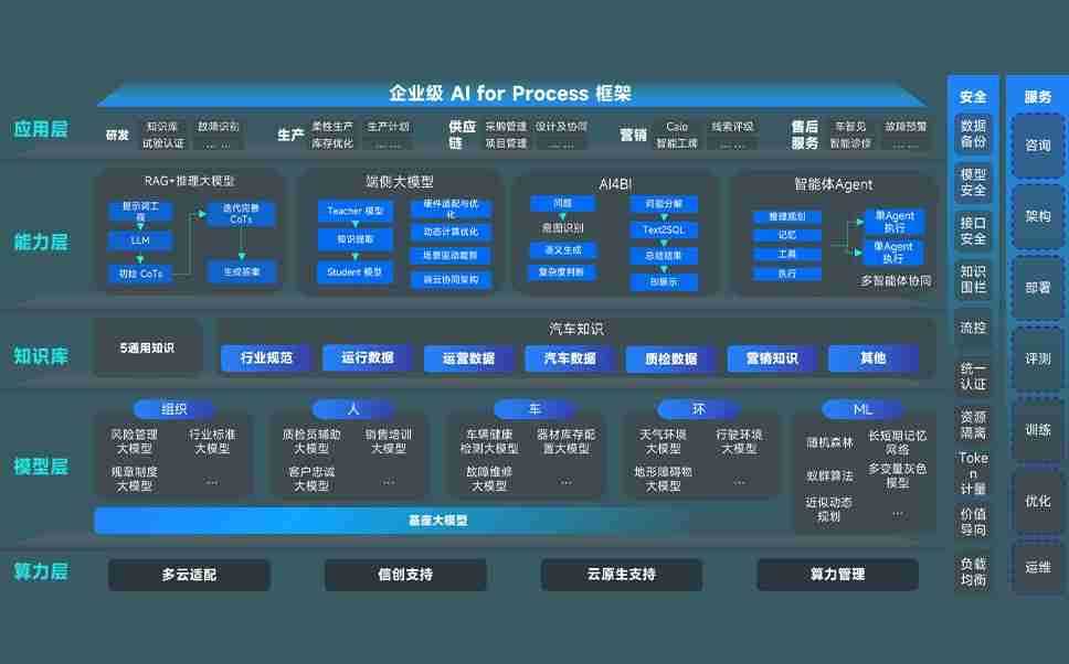 端到端的一站式AI工作空间深度融合了从企业战略规划到日常经营的全流程业务板块,,,定向解决车企内部领域多、、、部门多、、、链条长、、、、场景碎片化等难题,,,支持车企快速构建以AI为核心的生产力写作体系,,,,实现任务执行与AI能力的无缝集成与交互